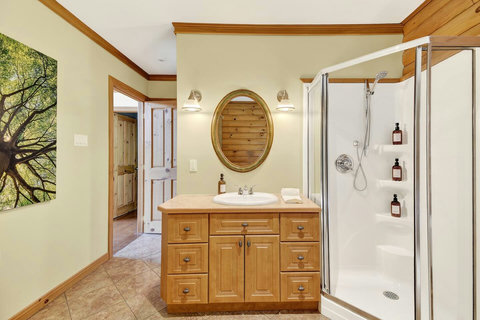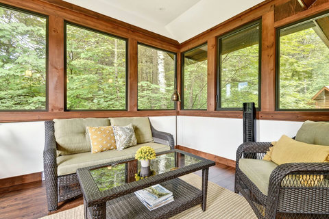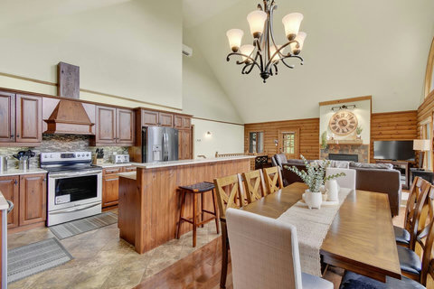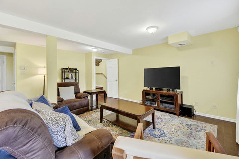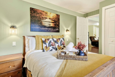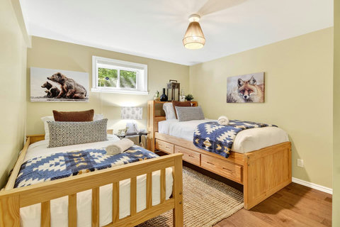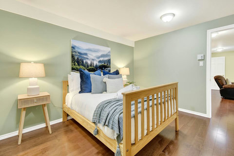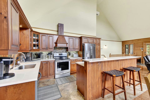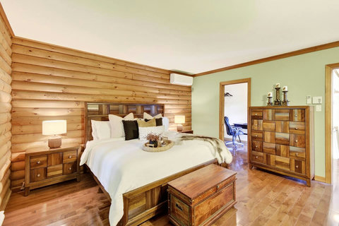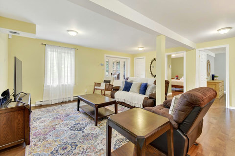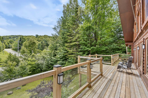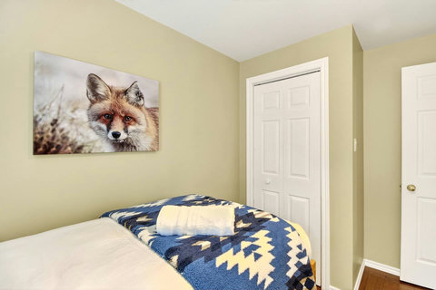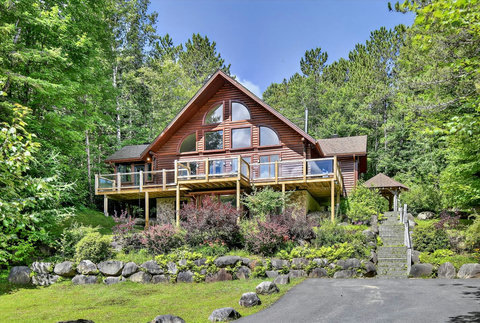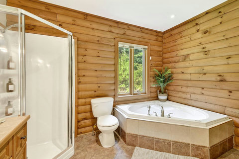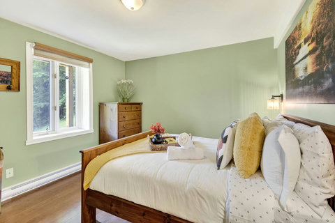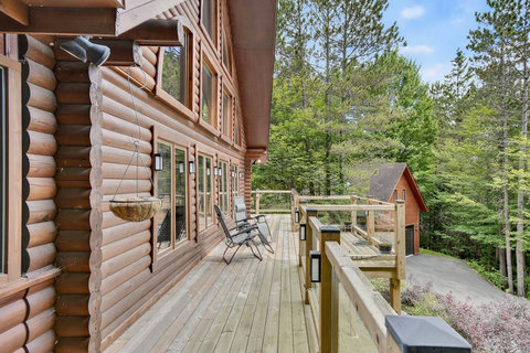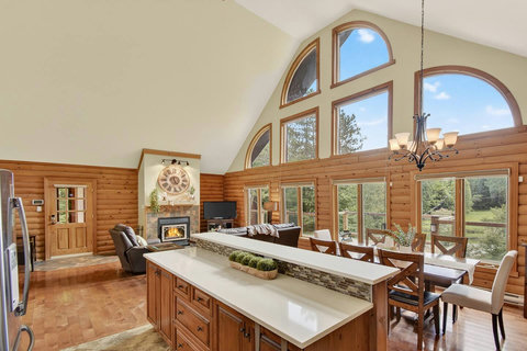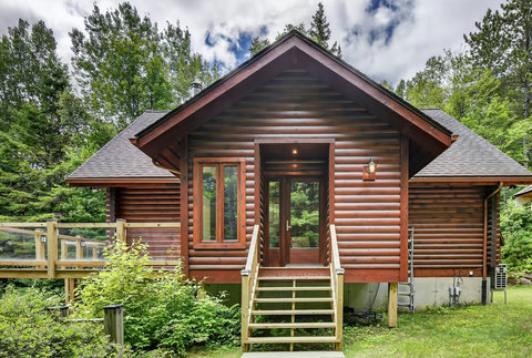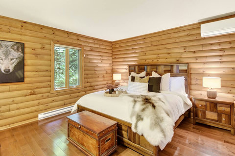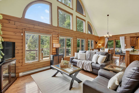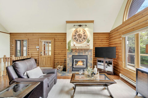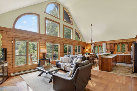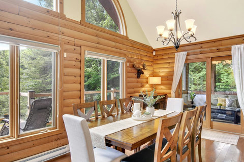 *** Please note that the barbecue is available for use only from May to October. 🍽️ Fully Equipped Kitchen & Dining Room: Whip up your favorite meals in a chef-ready kitchen with stainless appliances, tons of counter space, and all the essentials. The bright, open dining area with double-height ceilings is perfect for lingering meals and morning coffee ☕ with sunlight streaming in. 🛋️ Cozy Living Spaces: - Main Living Room: Vaulted ceilings, natural light, and a fireplace center piece 🔥 - Living room #2 (downstairs): Kick back with a movie or play some board games! - Screened veranda with comfortable seating, perfect for reading or relaxing in nature 🛏️ 4 Bedrooms – Perfect for Families & Groups: - Bdr 1: King bed with walk-in closet and office space - Bdr 2: Queen bed - Bdr 3: Double bed - Bdr 4 (Kids’ Favorite!): Two single beds 🛁 2 Full Bathrooms: - Main Bathroom with walk-in shower and jacuzzi-style bathtub - 2nd Bathroom with a shower/bath ✨ More Amenities You’ll Love: ✅ High-speed WiFi ✅ Washer & dryer ✅ Dedicated workspace ✅ Large wraparound deck ✅ BBQ space with propane provided (May to Oct) ✅ Forest views 🌳 Big land, No visible neighbours ✅ A/C and heating for year-round comfort ❗Please be advised that access to the cottage requires ascending approximately 20 exterior steps from the parking area, as the property is situated on a small hill. While the stairs are subject to weekly manual snow removal and salting under a contracted service, guests are expected to exercise caution at all times, use the handrail, and wear appropriate footwear. The property owner and management cannot be held responsible for accidents or injuries resulting from use of the stairs. Digital doorlock