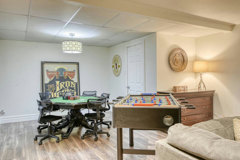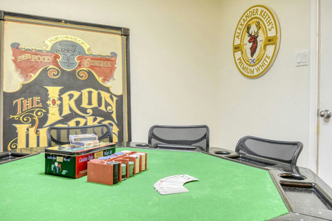 - Game Area – Features a poker table and foosball (babyfoot) for entertainment