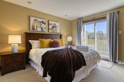 The property is located in Domaine de l'Aiglon, a townhouse cottage project built inside of the prestigious La Bête championship Golf course. The Domain is built in nature and surrounds the Golf course. Our property has a balcony view on the 6th green. Inside the Domain, you can take long nice walks, do biking, rollerblading, etc. The Petit Train du Nord Trail is even only 8 min away from the Domain by bicycle. 2 pools are accessible in summer for owners and renters, as well as a park for kids. This project is very close to Mont Tremblant Village, all essential stores and supermarkets, as well as being close to tons of fun activities!