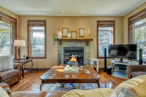 - Living room with fireplace and flat screen (Entertainment: Netflix, Disney+)