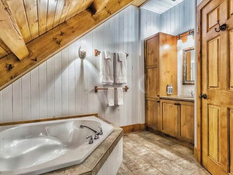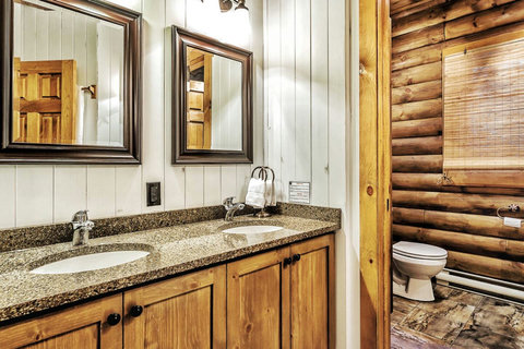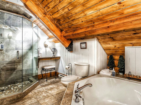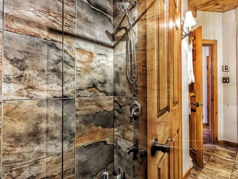 Main Floor Bathroom: Full bath with modern amenities and cabin-style finishes.